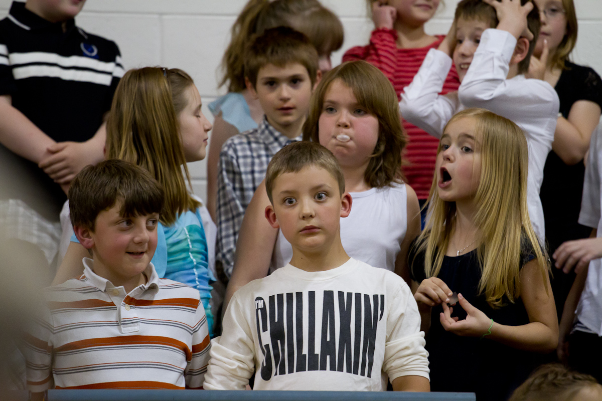 I decided to start playing with high-ISO images this week at a Spring concert for my niece. The concert was held in a school gymnasium with tall ceilings and less-than-stellar lighting. I was at least 30 feet away from the kids, so a high ISO was required if I didn’t want to use flash. For most of the pictures I ended up using flash, but there was one in particular that I didn’t. It’s a shot that I like to call “Chillaxin”. I set the camera to Auto ISO so that it could figure out the best ISO speed based on my aperture (f/4.0) and shutter speed (1/125 sec). For this shot it chose ISO 3200. In the past I wouldn’t have even dreamed of taking a picture at ISO 3200, but the result was actually quite usable.