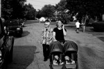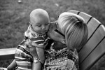 Anyway, I was inspired and decided to try the same. I took some photos of Sally, the boys, and her mom on an evening walk through the neighborhood. I focused on trying to capture the little moments. All of the photos were shot in black and white, but since I shoot in RAW, they were actually just color photos that were converted in the camera. When I loaded them into Lightroom they changed back to color and I had to re-convert them to black and white. Not quite the effect that I wanted, but they looked black and white when I took them so I at least had it in mind. My lens isn’t quite as sharp as Julie’s, but it’s good enough to get some crisp focus on the subjects with a nicely blurred background. Someday I’ll own a Canon lens with great bokeh, but for now my Tamron will have to do. Take a look and let me know what you think.