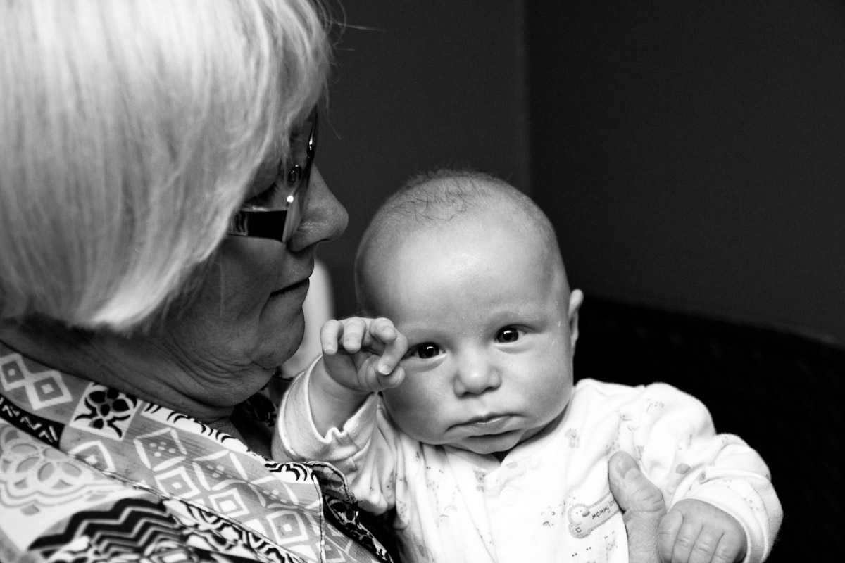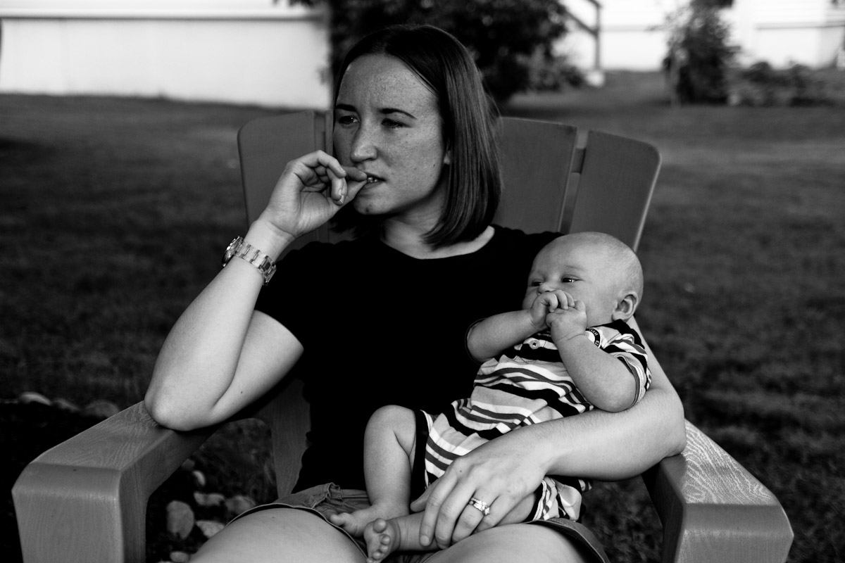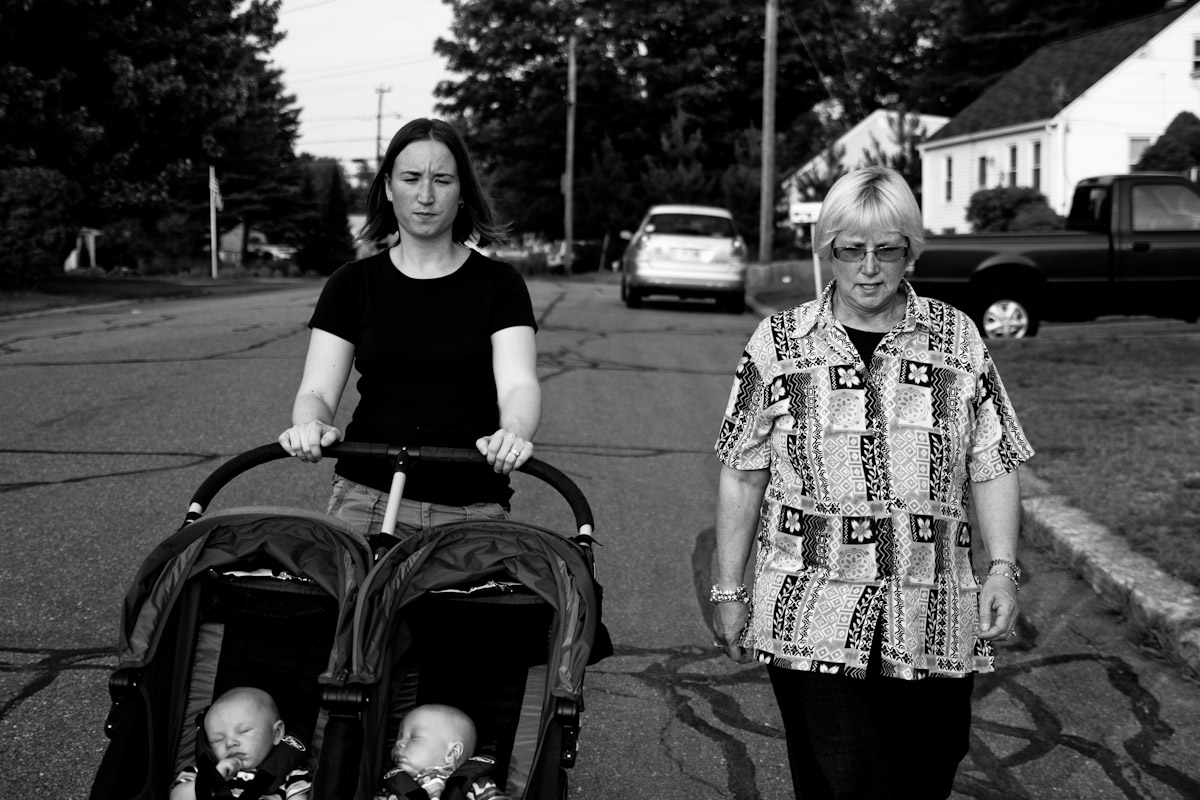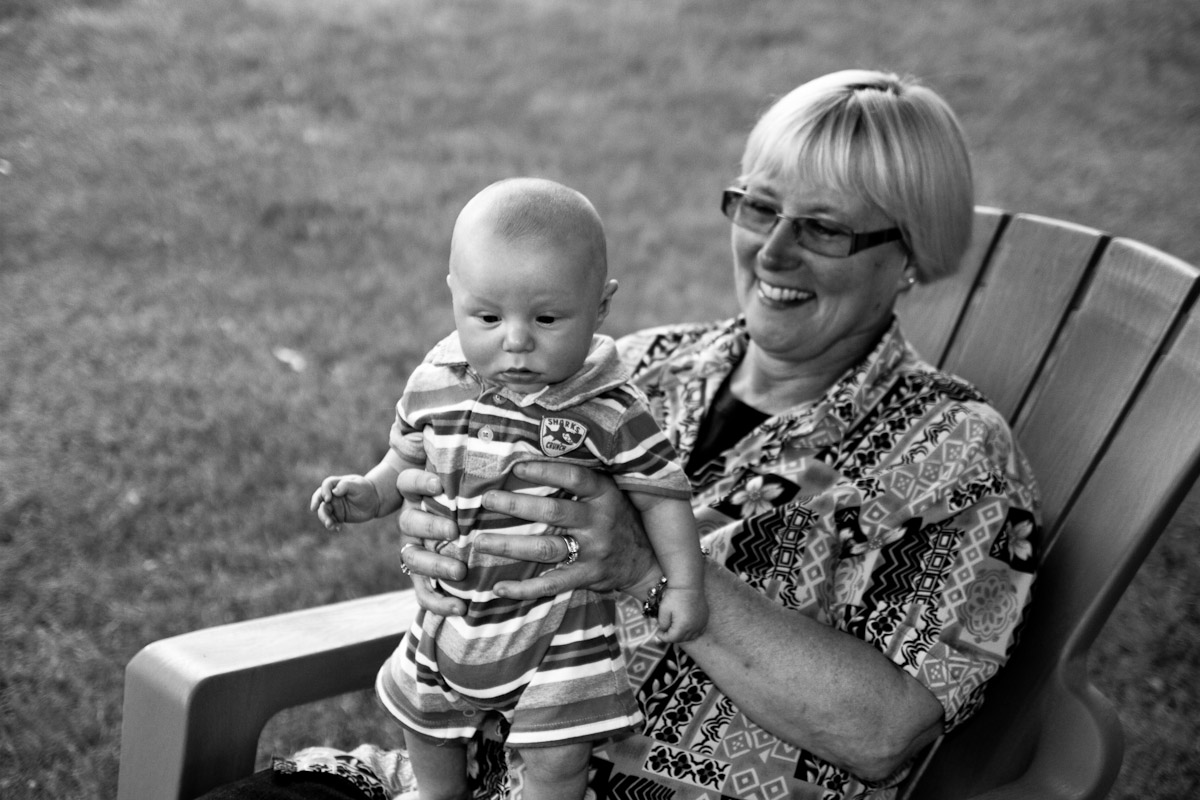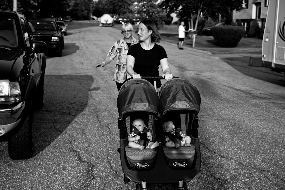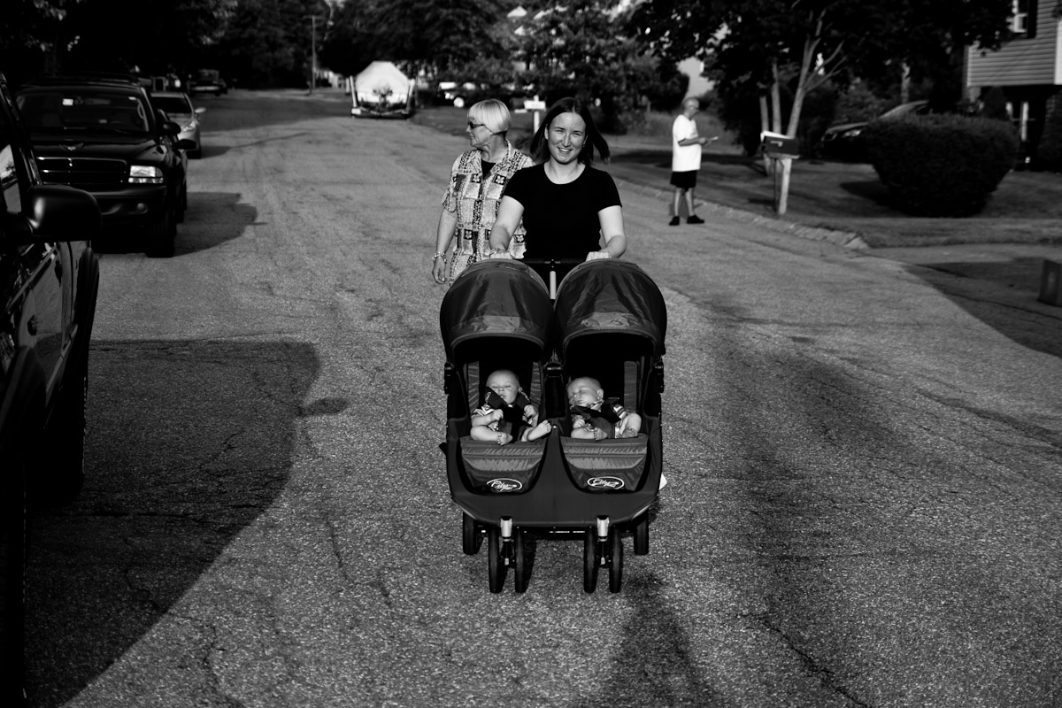 Anyway, I was inspired and decided to try the same. I took some photos of Sally, the boys, and her mom on an evening walk through the neighborhood. I focused on trying to capture the little moments. All of the photos were shot in black and white, but since I shoot in RAW, they were actually just color photos that were converted in the camera. When I loaded them into Lightroom they changed back to color and I had to re-convert them to black and white. Not quite the effect that I wanted, but they looked black and white when I took them so I at least had it in mind. My lens isn’t quite as sharp as Julie’s, but it’s good enough to get some crisp focus on the subjects with a nicely blurred background. Someday I’ll own a Canon lens with great bokeh, but for now my Tamron will have to do. Take a look and let me know what you think.