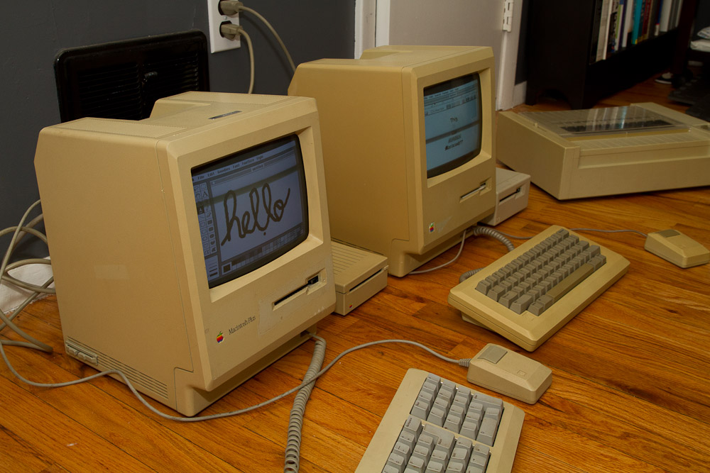 So I went out to Dunbarton today to pick up the two classic Macs that I found on Craislist earlier this week. The ad didn’t specify which models the were, but based on the pictures I thought I was getting a working Mac Plus and a non-working Mac 512k, circa 1986 and 1985. The Macs came with software, manuals, a printer, and a modem for $50. I wasn’t sure how many manuals it included or what software I’d get, but I was pretty excited. After picking it up, I am simply floored.