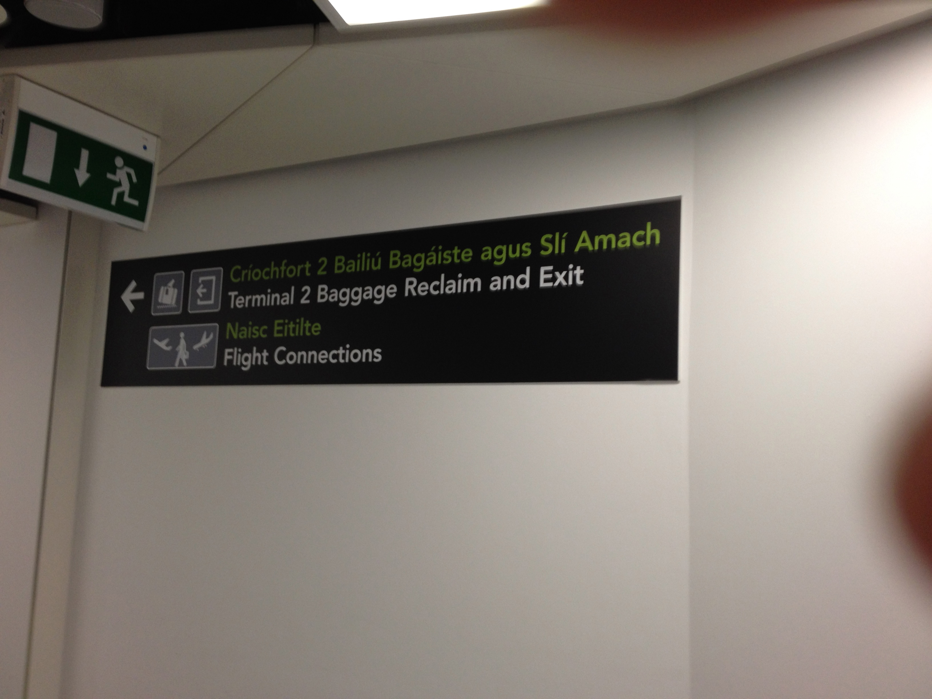 I found the Dublin airport to be very interesting because every sign was written in two languages – English and Irish. Irish (a Gaelic language) is not the primary language spoken in Ireland but is still taught in schools and considered and official language in addition to English. After leaving the terminal we took a pretty long walk outside over to the bus station. There were a huge number of busses at the airport going to all sorts of places in Ireland. We pulled 20 Euros out of the ATM and waited at the bus station.