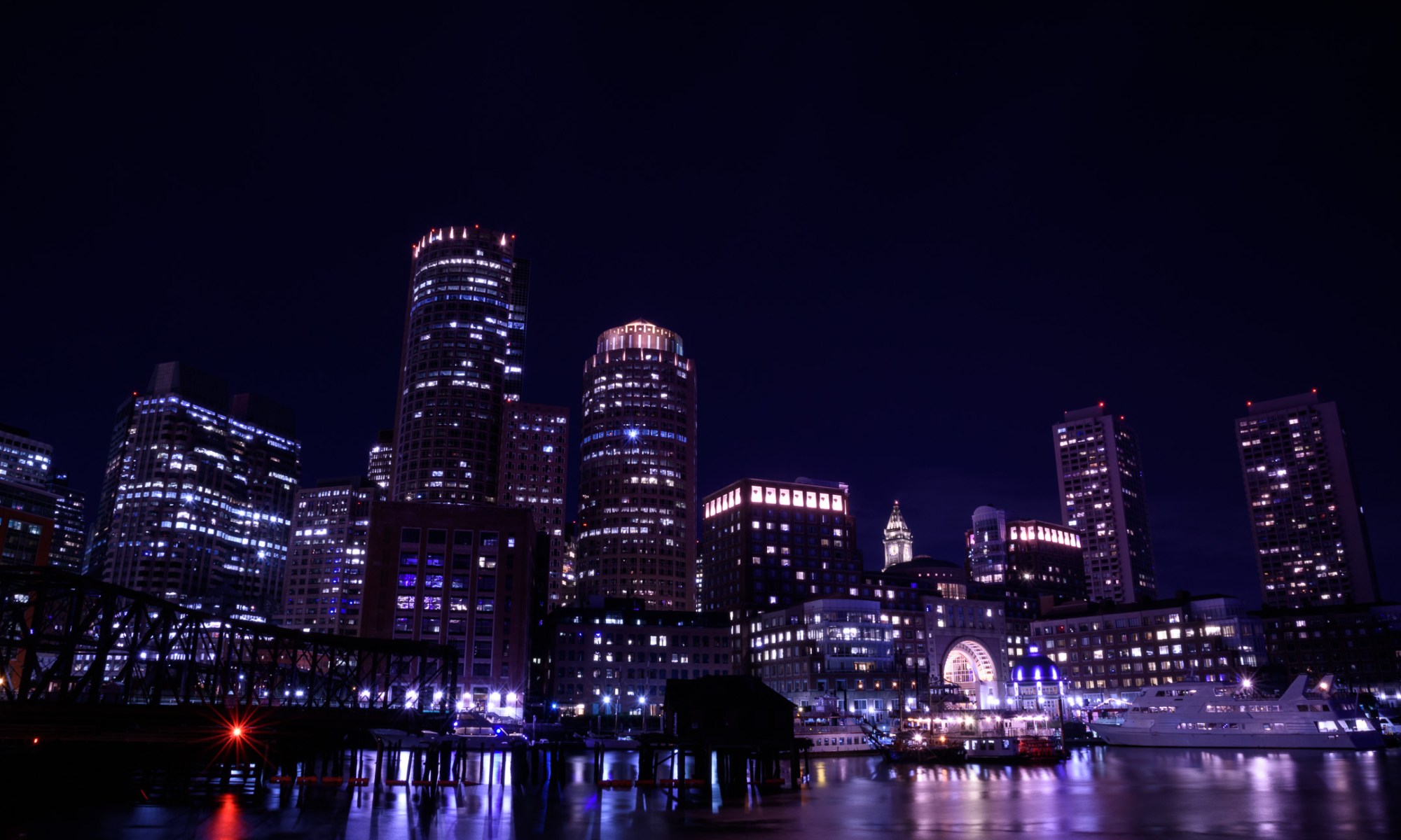 A few weeks ago I spent a few days in Boston for training. I stayed at the Fairmont Copley Plaza next to the John Hancock Tower. I spent one evening photographing my trip to Long Wharf where I wanted to get night shots of the skyline.