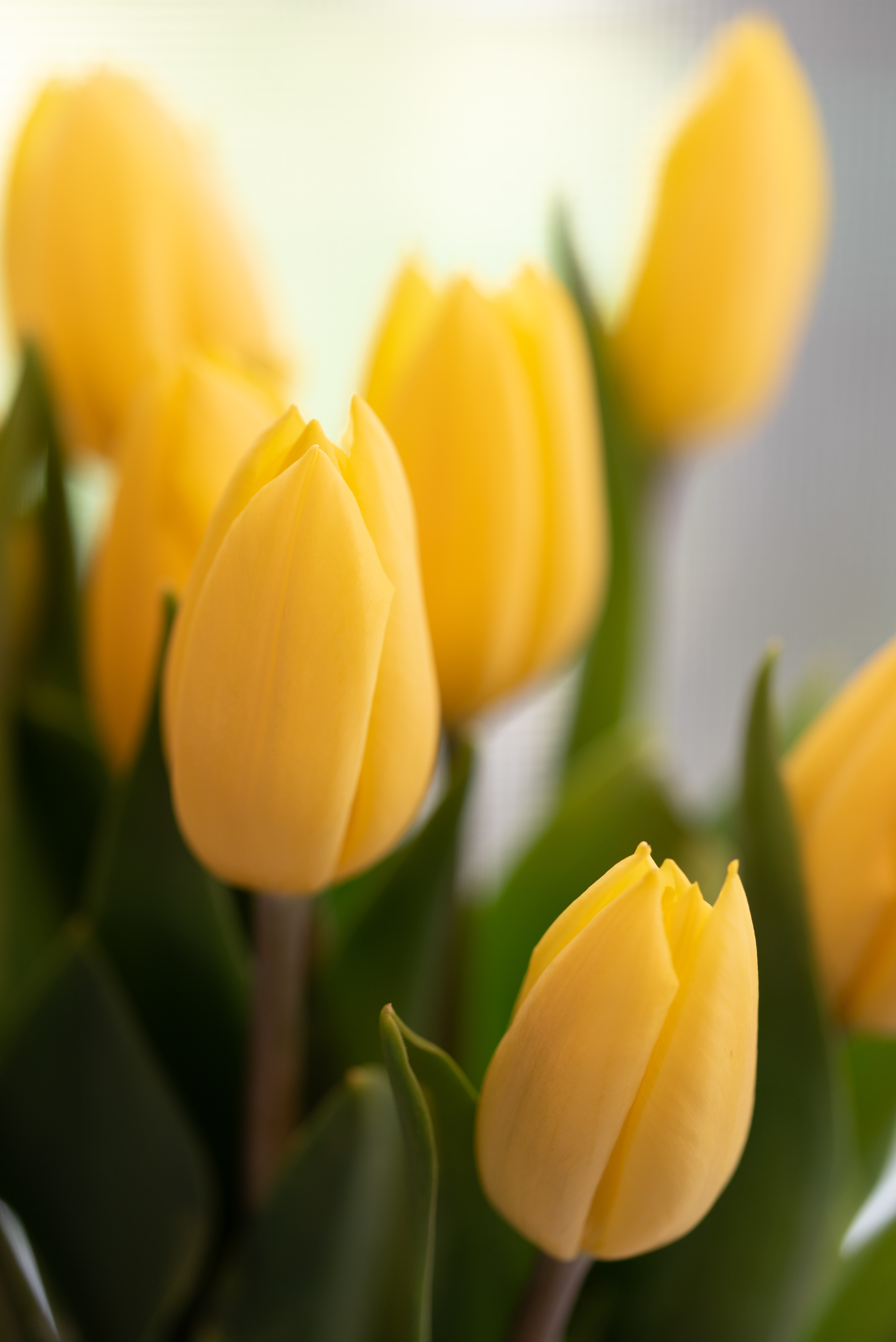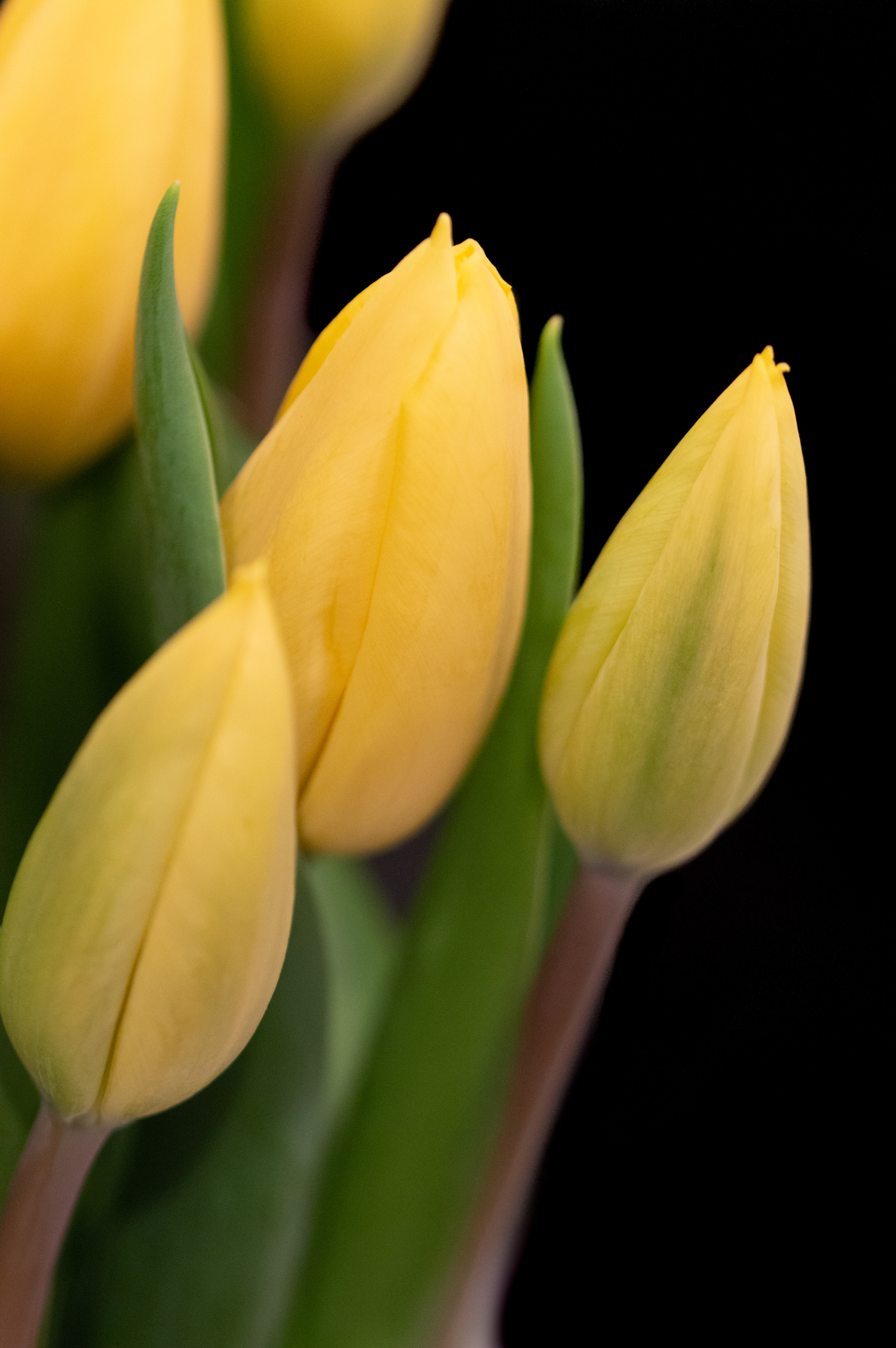 About two weeks ago I was shopping for Mother’s Day flowers at Tendercrop Farm and came across a beautiful array of red and orange potted tulips. They looked amazing and I considered buying them, but didn’t. I found some red tulips downtown that week but the images weren’t that great due to the wind. I decided to buy some and went back to Tendercrop that Friday. They were gone. Tulip season was almost over. As I left the store I spotted a container of pre-cut yellow tulip bouquets. I knew they wouldn’t last long but they were $15 so I bought them.