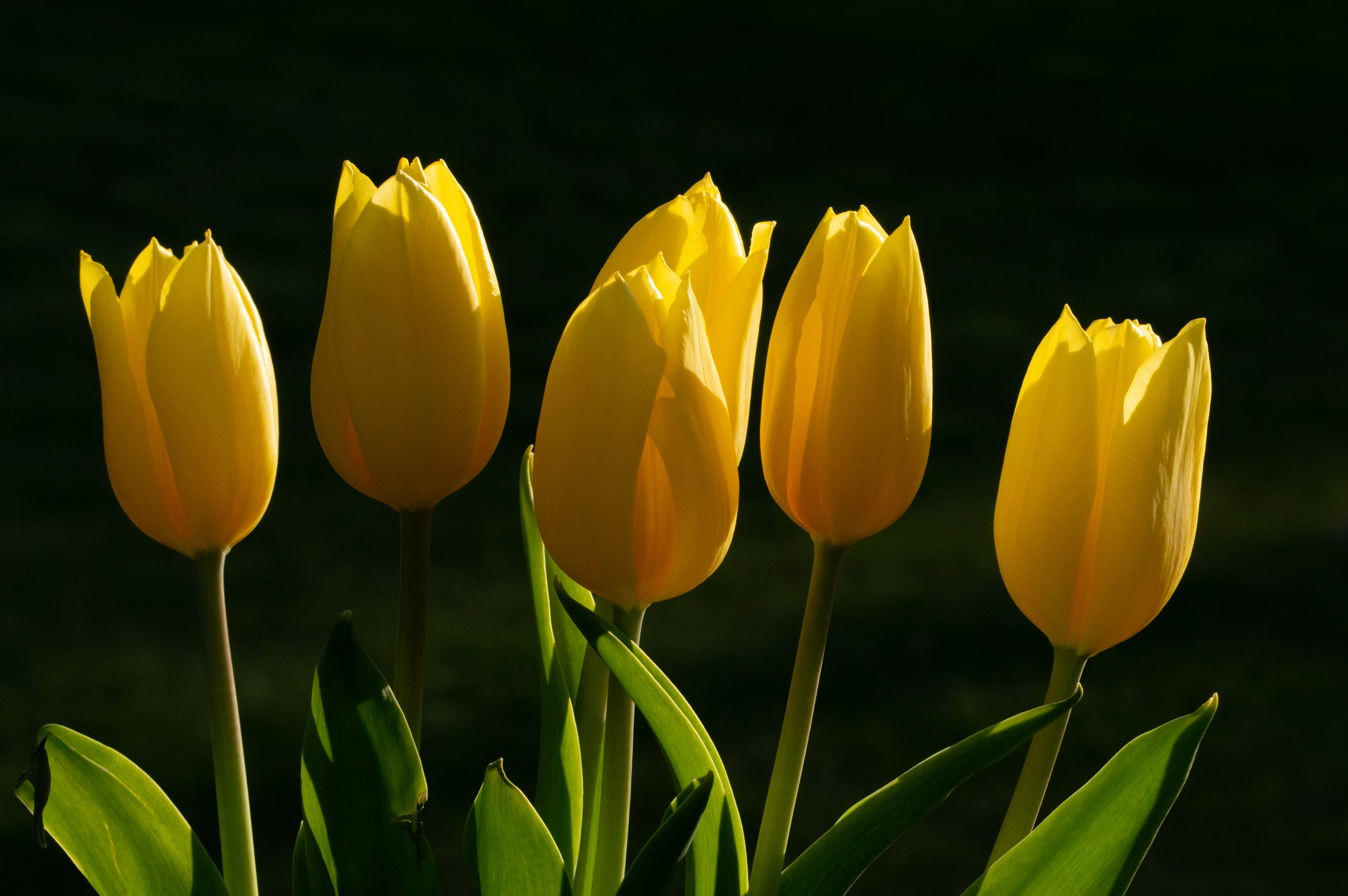 I’ve always enjoyed Tulips. They come in beautiful colors like red, purple, yellow, orange, pink, as well as interesting mixes. I like their cup shape and the way the tops of the petals layer together to make a jagged line. I particularly enjoy the way they look backlit, when the light creates deep shadows within the petals and the background becomes dark. One of my favorite photos is actually an “accidentally good” tulip photo I took on my Canon EOS 50D. I shot the image in the bright afternoon sun which made bright light filter through the petals while keeping the background nearly black. I say “accidentally good” because I didn’t do anything specifically to make the background black, it just came out that way.