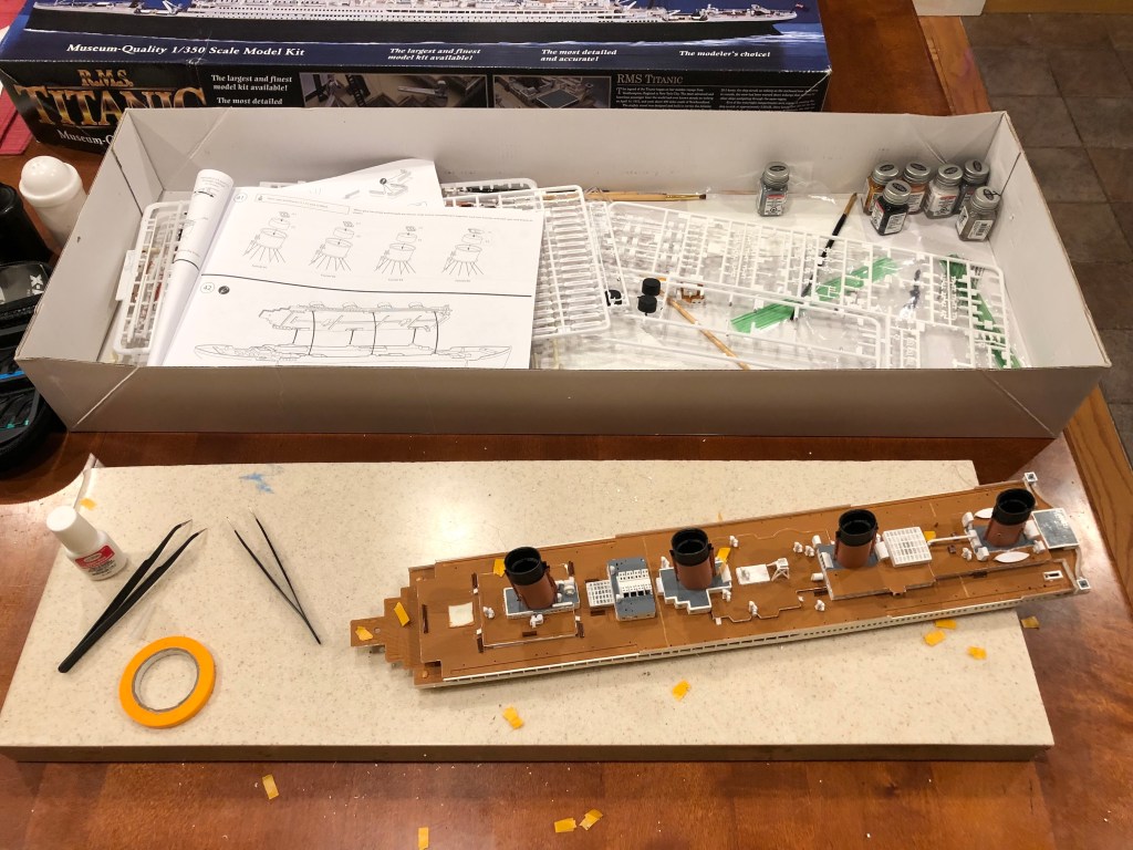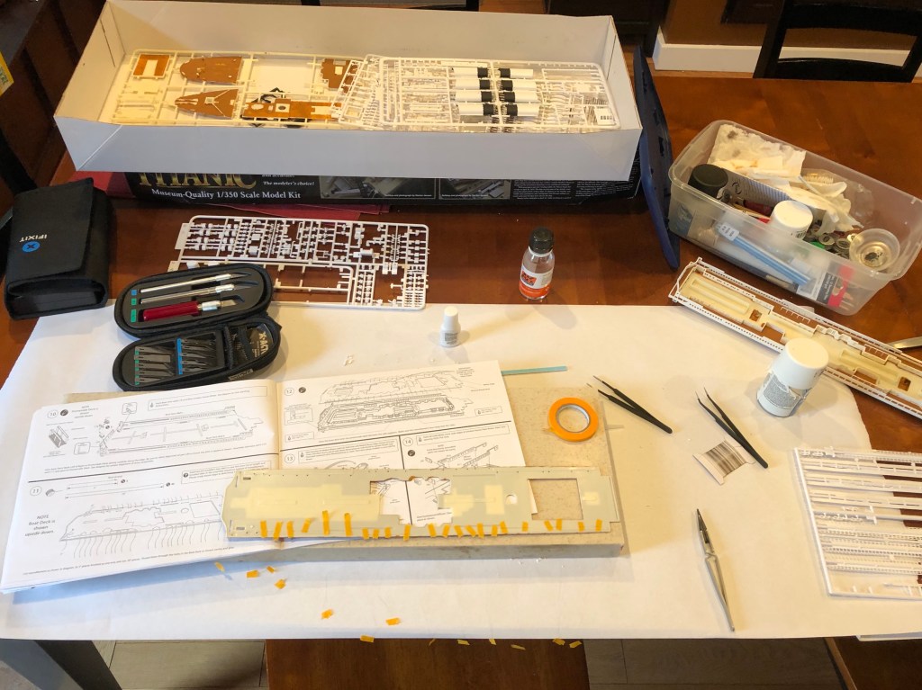 The Titanic was going to be different. I wasn’t 12 years old anymore and I was going to try this time. I read up on what tools to get, what kind of glue to use, and what techniques were best. I bought the colors recommended by the instructions, found model brushes, some thin painter’s tape, and a whole set of Xacto knives. I planned to pre-paint all of the parts, cut off all of the sprues, use super glue, and really try my best.