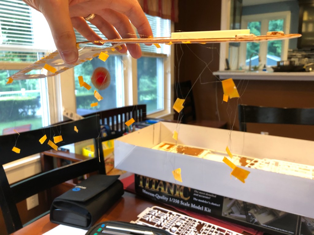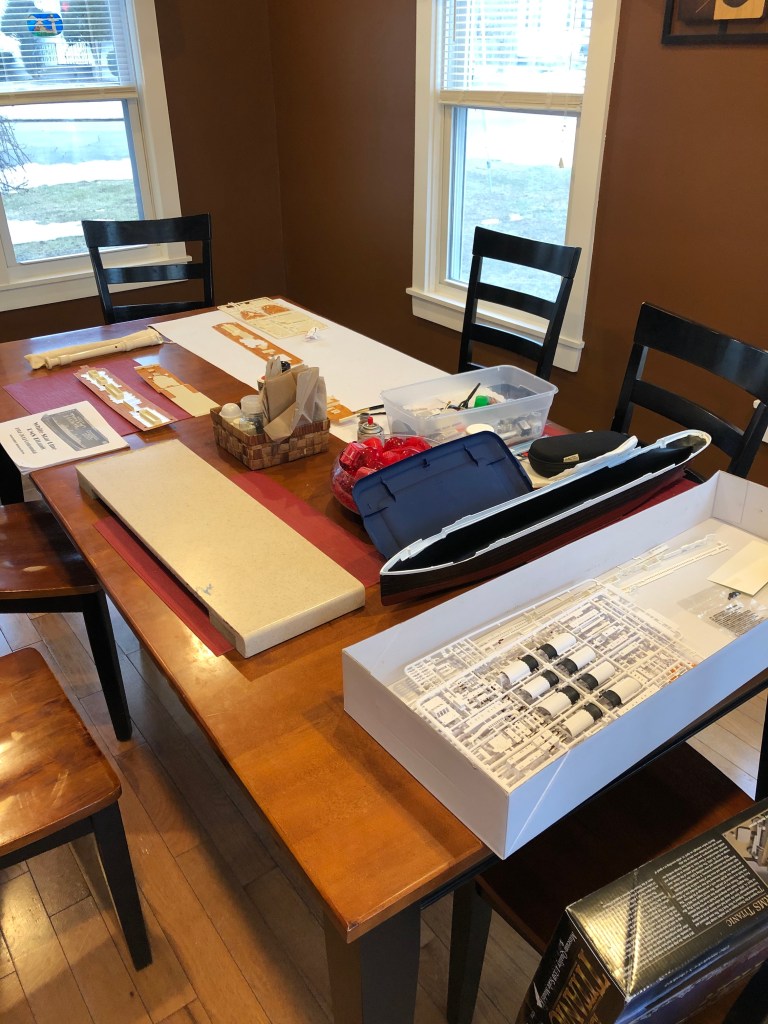 Despite the difficulty and all of the learning I still really enjoy it. Sally and the boys can watch TV in the living room while I’m putting little details on in the dining room still hearing what they’re watching. I’m learning a huge amount about the ship itself in terms of its layout and shapes. Did you know that each funnel has a large vent facing forward and most have smaller cowl vents around them facing aft? I didn’t. It’s actually really fun because I feel like I’m more acquainted with the ship. Makes it easier to imagine being on it.
