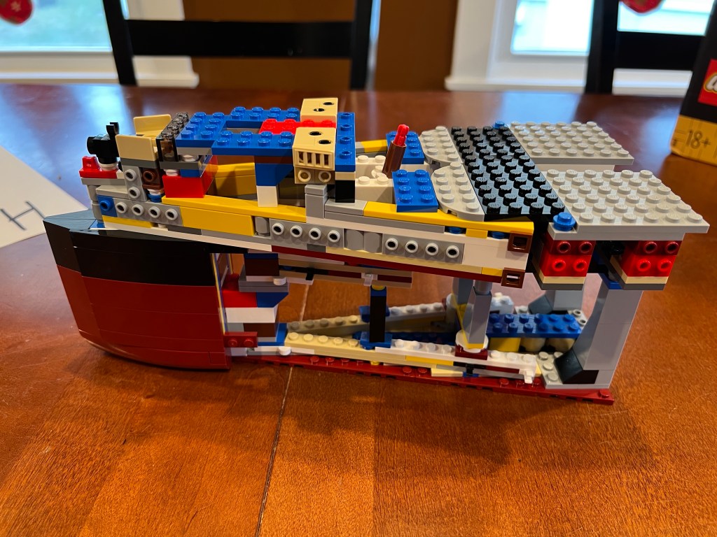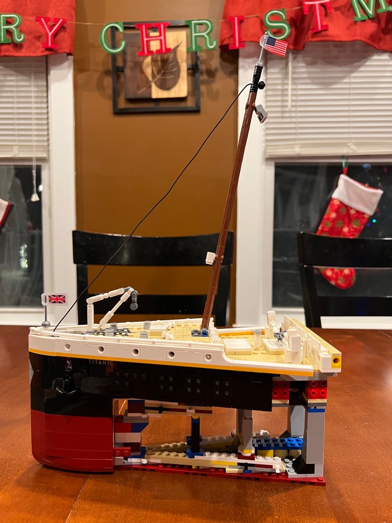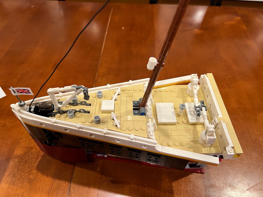 I bought Lego’s 9,000 piece 1:200 scale Titanic recently and have started to put it together. So far I’ve spent 2 hours on it and made it through four sets of bags. So far it’s been great – the instructions are easy to follow, the bags are well organized, and it is taking a recognizable shape.