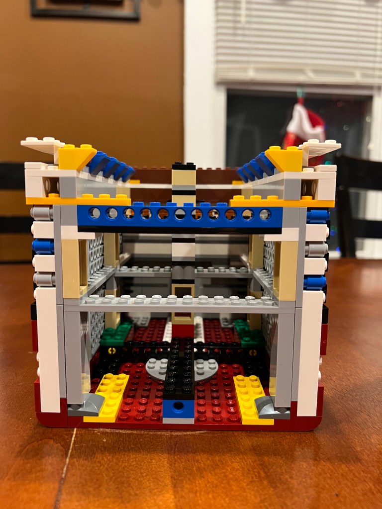 Like the bow section, the mid-ship is divided into two units. I worked on the first one today and it went a bit faster than the other section due to its rectangular nature. It’s kind of boring, in fact. It has the other side of the interior from the bow section, continuing the pool and the rooms, but there aren’t as many neat details in there. Due to its boxy nature it actually has a lot of empty space within, perhaps an opportunity to add some additional details later on?