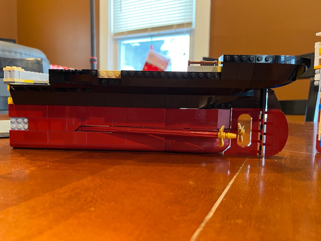 I am about half way through the second unit and I’ve found it really interesting. It narrows significantly and I like the construction techniques involved. The back of the Titanic is one of my favorite parts of its design because I like the way that the curvature of the underside transitions to a completely flat end. It is also where the white superstructure ends, which each deck ending in a different place cascading downward into the aft well deck. A lot of the lower part of this area is dedicated to building the propeller shafts and I think Lego has modeled them well.