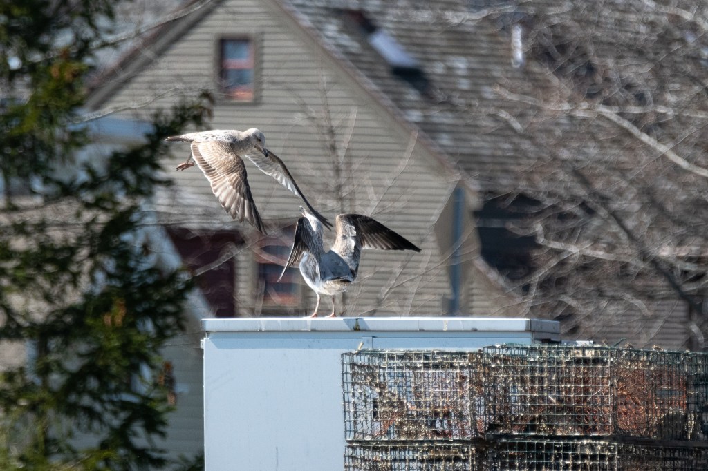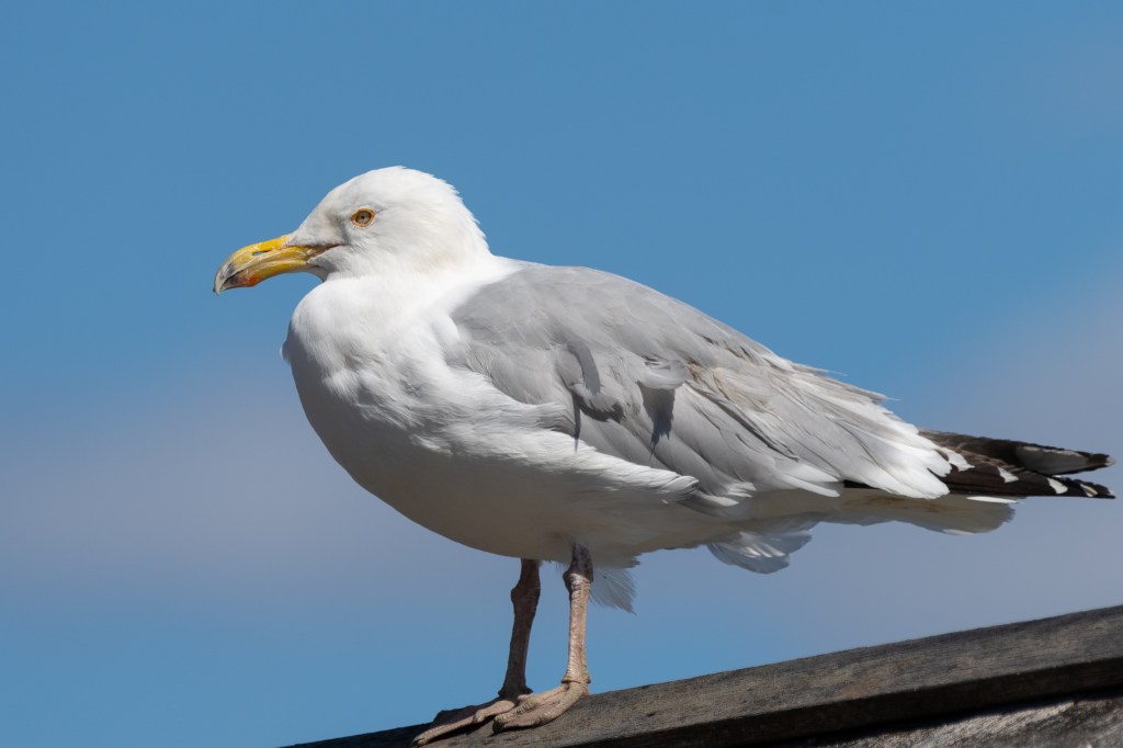 I found my first seagulls at Four Tree Island a short walk away. Two were perched on top of the roof over a picnic area and the Z50’s auto area AF resulted in some nice sharp eyes. Though the birds were not moving much I was initially impressed with the accuracy given the 150 – 600 was adapted and isn’t the fastest performer even on a DSLR. While this situation worked out, it’s not where I really want to be. I don’t like auto area AF because I have zero control. In this case it meant that the camera always focused on the seagull that was closest, never focusing on the one in the background.
