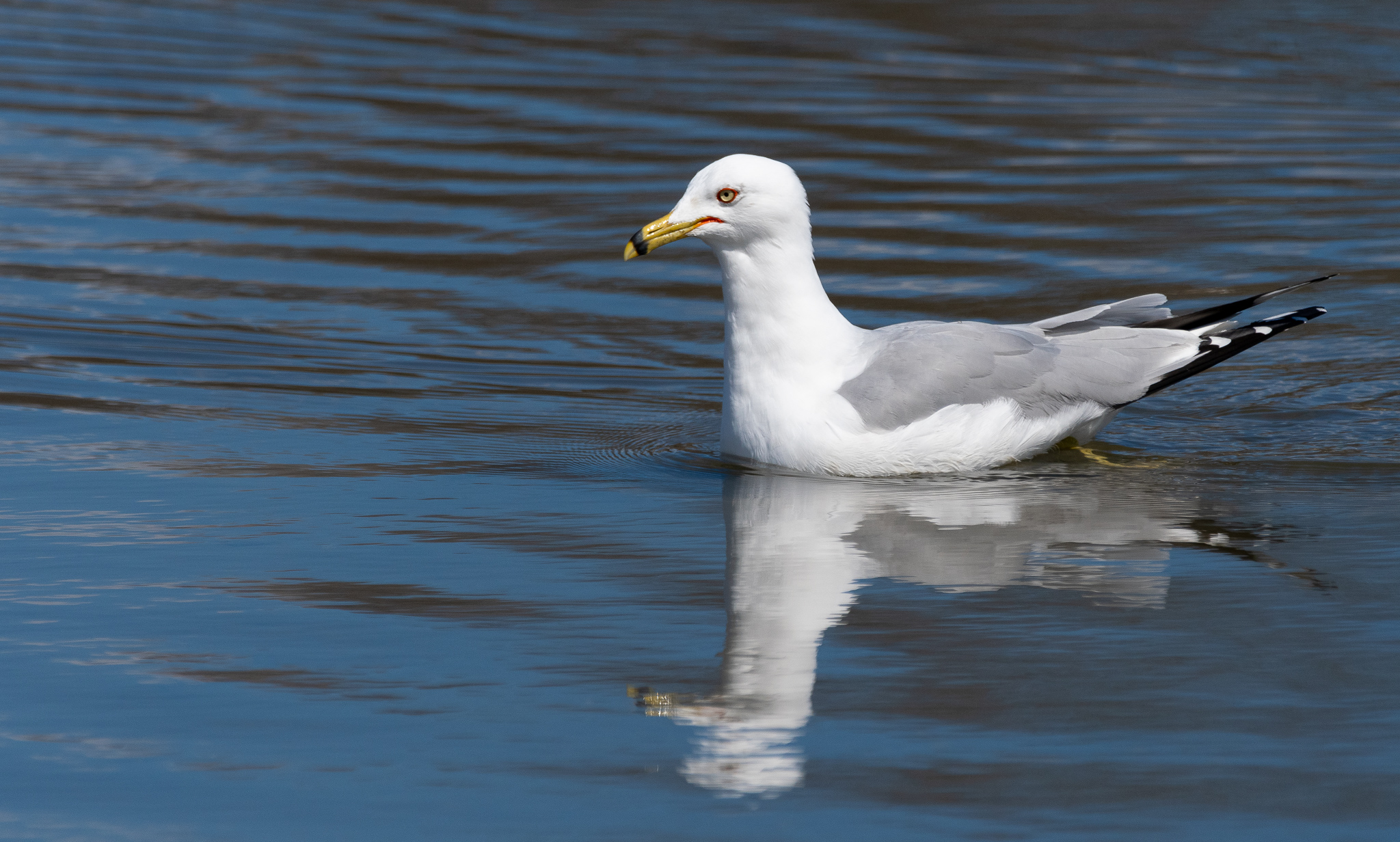I continued on to the other side of the park where there are tennis courts, a dog park, and an inlet where the gulls like to hang around. Having so much success earlier I wanted to get a few shots of the gulls floating in the water looking into their reflections. I don’t really know what happened but most of my images were soft. I had my D500, I had the right aperture, a high shutter speed, and I was stabilizing myself, but most of them were terribly out of focus.
