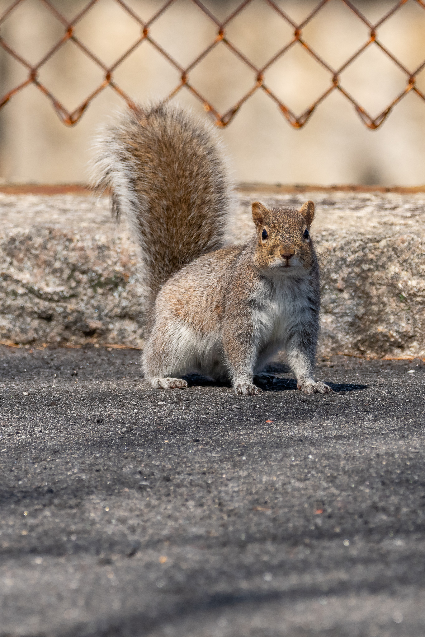 After the breadstravaganza, I encountered a squirrel who hopped from one side of the walkway and back again. It was tentative about me, hopping once, stopping to look at me, hopping again, stopping. This gave me a great opportunity to catch the bugger as it went. I even got a few shots mid-air! These unfortunately aren’t my sharpest images – I had the shutter speed, aperture, and zoom correct, but I don’t think I was panning with the squirrel quite well enough. Even so, I ended up with a few nice images.