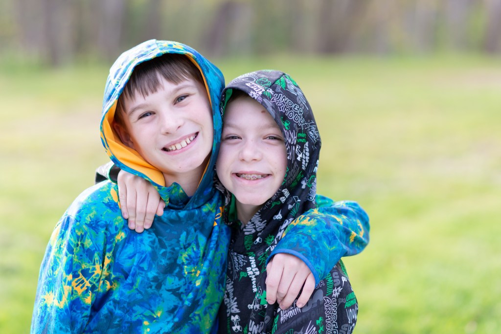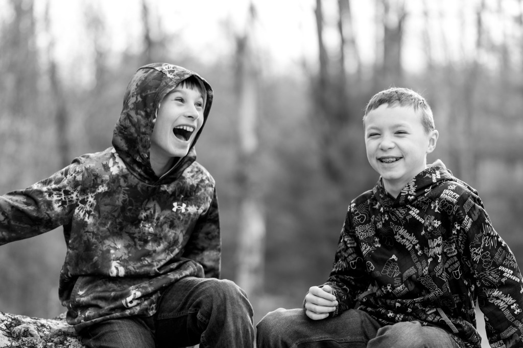 That time was about 6 PM and I was ready. I put the boys in sweatshirts so they wouldn’t be cold and could put the hoods up to keep Adam’s hair in place. The sun was now behind the background I wanted, which would create some nice highlights and keep shadows at bay. I brought a reflector in the form of a piece of white foam board to put on the ground and reflect clean light up to their faces. I brought two cameras āĀ the a6100 again, but swapped my high-resolution D800 in for my D750. It was a great opportunity to test the D800, and I paired it with my 85mm f/1.8 to see what it could do.