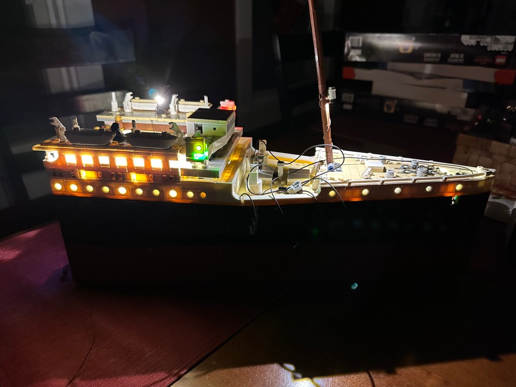 I’m very happy with the kit. It shipped fast and was well organized. It came in a high-quality box with a magnetic flap and all of the pieces were sorted into individual resealable bags. The PDF instructions were clear and the pieces were mostly easy to connect together. Disassembling any Lego is a bit challenging, and the scale of the Titanic meant that I needed a few ziplock bags and a box for extra pieces. In some instances I had to peel the entire outer structure off in order to put the lighting in.