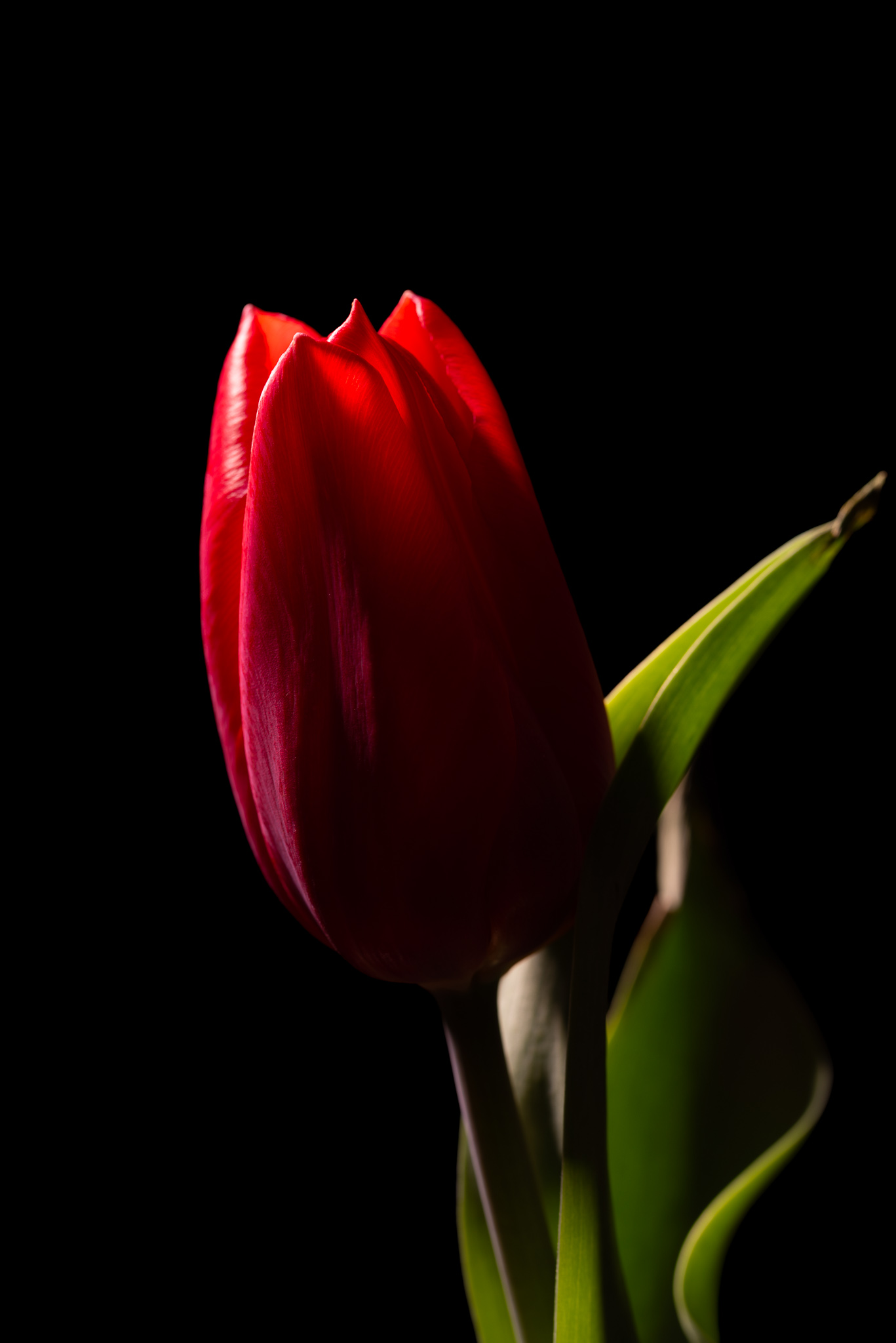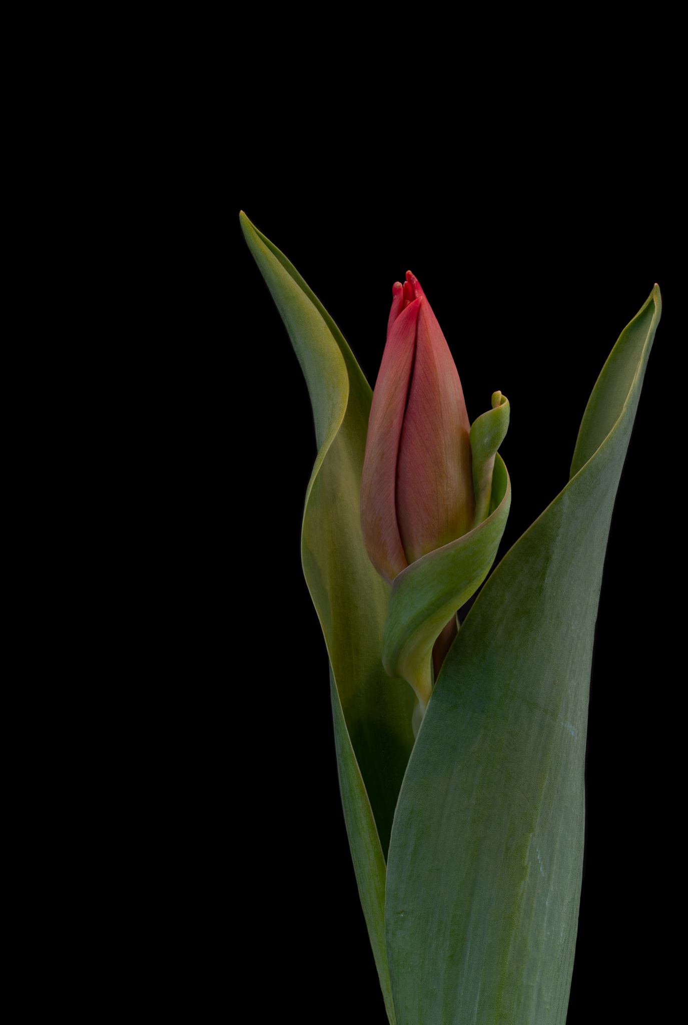 I really like the image in general, even the single one. The tulip is nice and large and the curvy edge of the bottom leaf leads in to the background. The lighting worked out really well, providing a bit of backlight, highlights on the leaves, and soft shadows on the other side of the flower. It’s done in the studio but has the natural look of the sun. Stacking manually wasn’t as much work as correcting Photoshop’s mistakes would have been