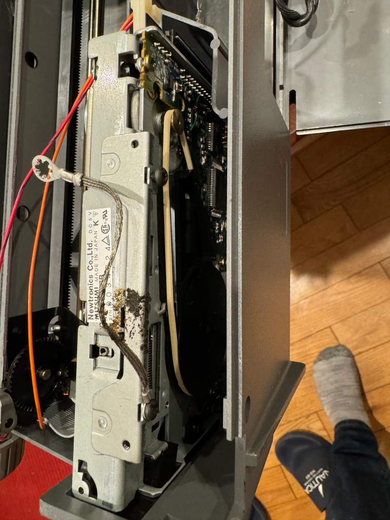 I didn’t have a replacement belt or disk drive. Knowing that I couldn’t make things any worse, I had an idea. What if I tried a rubber band? So I did. I thought the next step would be cake, but I couldn’t get the typewriter working after I reassembled it. At first it did nothing, then all it did is push the printing cartridge up. I flipped wires around a bunch of times (note to self: take a picture before disconnecting wires next time) and eventually got the screen to turn on, but it still wouldn’t type anything.