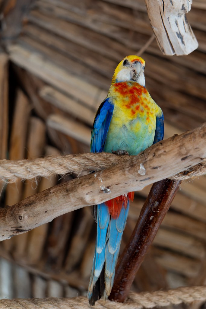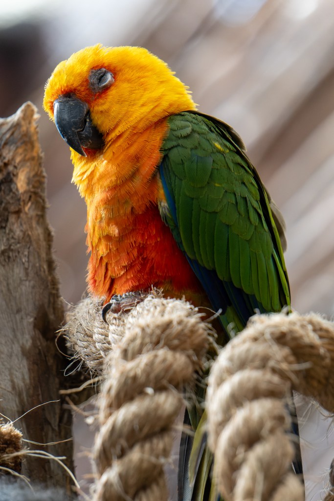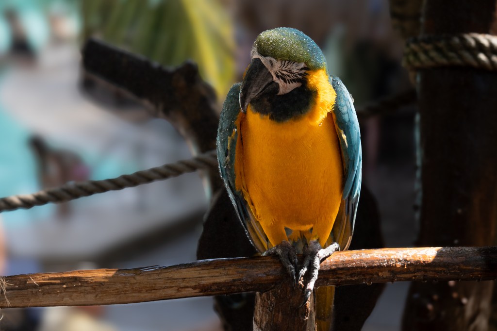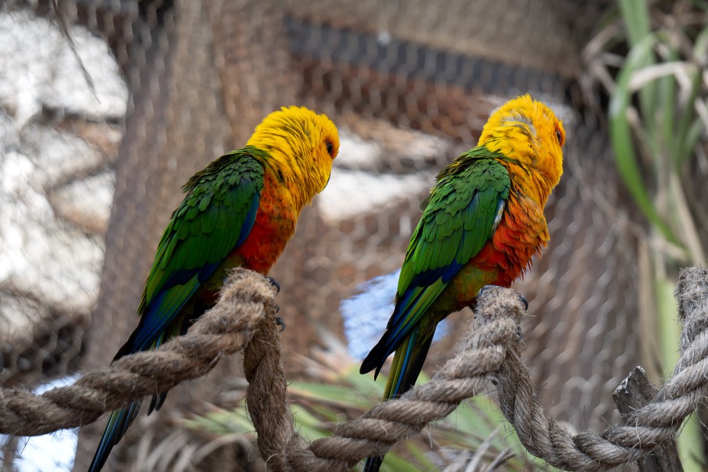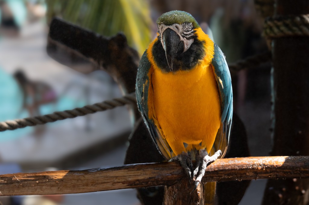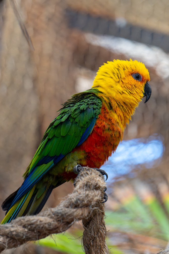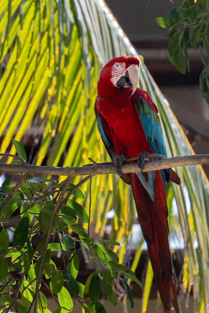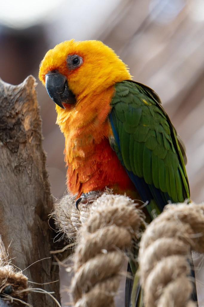 I’m happy to say that my compromise worked out. There were a mixture of different birds throughout the aviary and its layout allowed me to get close enough to make up for my shorter lens. I expected the aviary to be one large building with a bunch of birds flying around, but it was instead a series of elevated huts connected by rope bridges. Some of the huts had nothing in them, leading into the few larger ones that had birds. The huts were the size of a couple rooms in a house and were only 10 – 20 feet tall, making the birds pretty easy to access. As the rest of the family navigated through the huts and bridges, I stayed behind capturing photos of colorful birds.