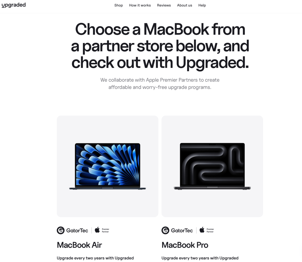 Upgraded isn’t run by Apple, but it might as well be. It works exactly the same: purchase hardware and pay installments on a zero percent loan with the option to upgrade before paying the whole thing off. The cost is divided up over a 3 year term, with an upgrade available after 2 years. By paying monthly I can get a new machine every two years and can bump the specs a bit at the same time.