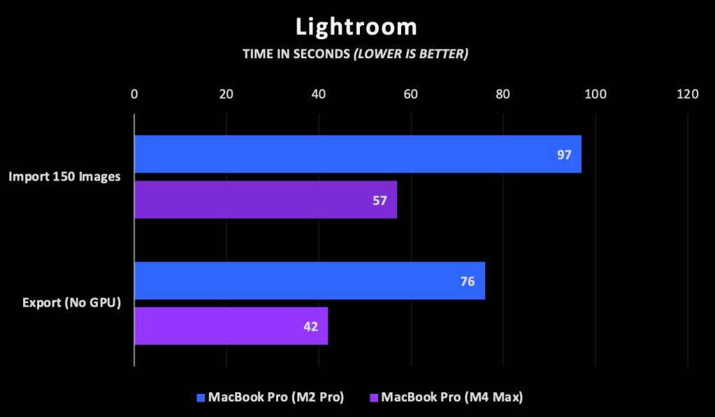 I haven’t done much editing yet and didn’t measure it, but the couple of things I did were very responsive. I had no issues with my M2 Pro, but I had a moment of “did I even click that?” happen on the M4 Max. This will be a great editing machine.