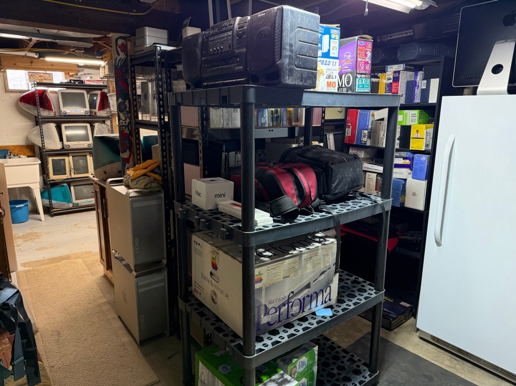 I made great progress getting everything organized and had restocked most of my laptops into one shelving unit. I was just about to start organizing boxed software and books when I decided to purchase a new dryer before ours failed. Why does that matter? Well our dryer is in the basement, and the only way to get a new one in is to go through my museum, which, of course, is not wide enough for appliances. So I had to move three shelves worth of stuff, two sets of storage racks, and a magazine rack to the other side of the basement. When the dryer arrived, I had to put it all back, reorganizing it again. On the upside, it turns out that reorganizing twice in a row makes for even more efficient storage!