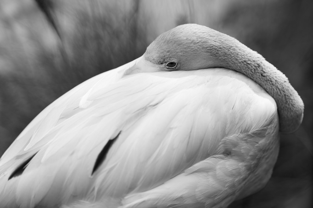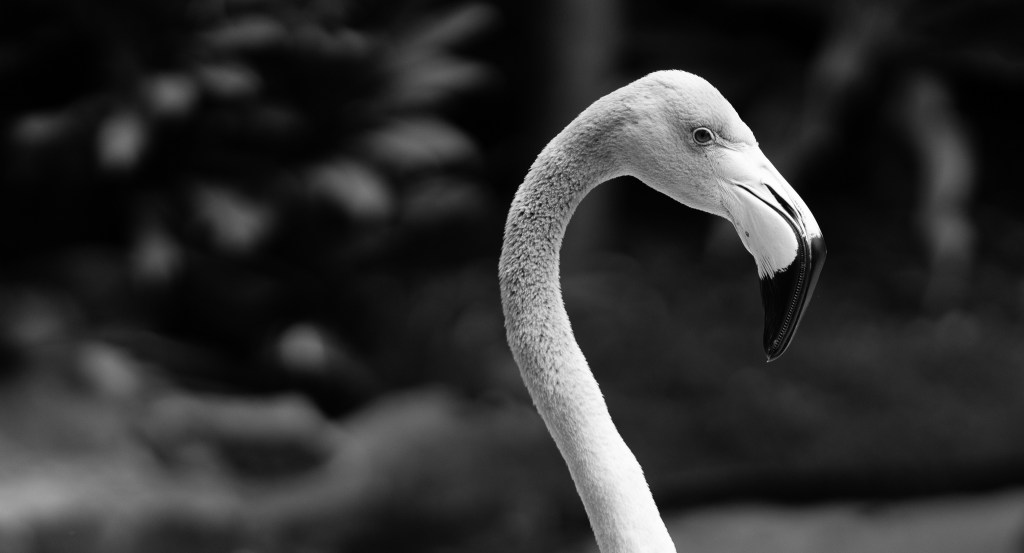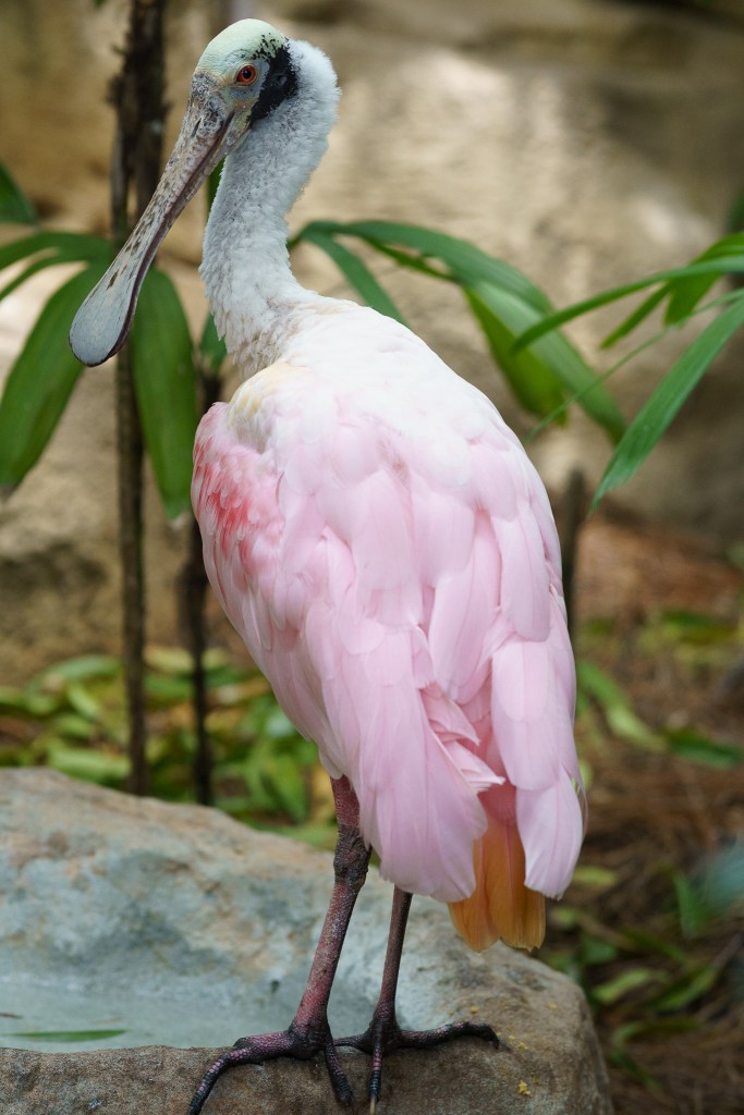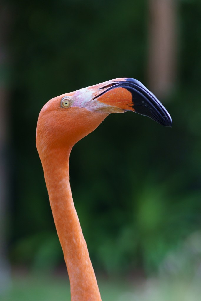 It all started with Flamingos. Discovery Cove has a flock that provides an up close and personal view, assuming you’ve paid for the tour. Luckily the entrance to the tour includes a picket-fenced area that’s only chest high, providing ample space to get close before going in. The Flamingos are completely visible over the fence and can even lean their heads over if they want. They’re very interested in visitors and come right up to the edge to investigate. As a result I got far closer than I expected, within inches of their faces at points. I had not expected to be at such a small distance and had to re-plan my lens choices.