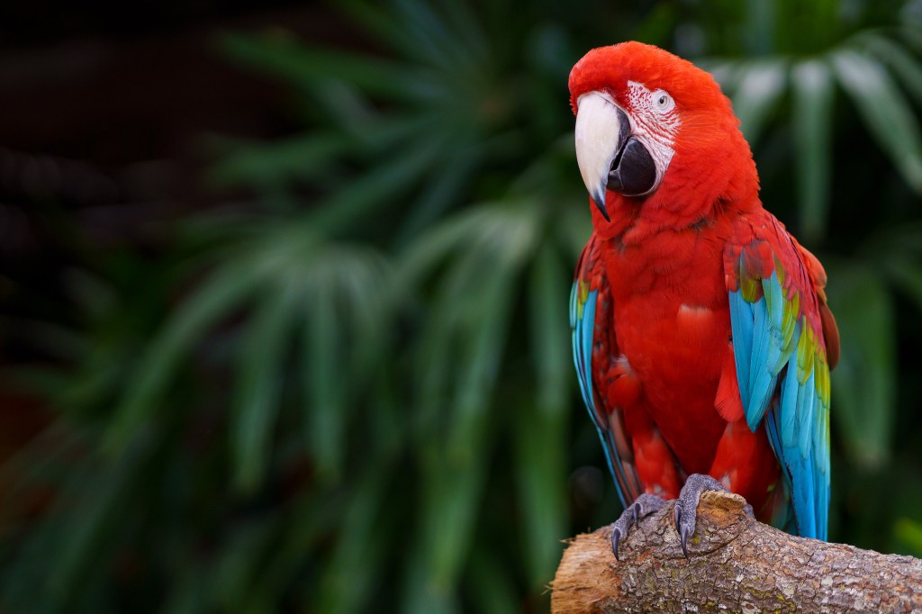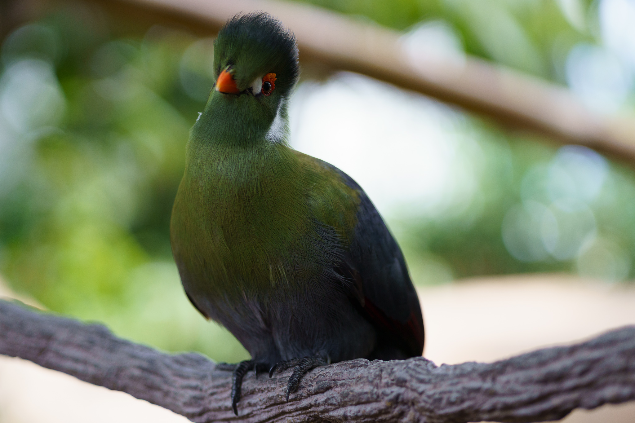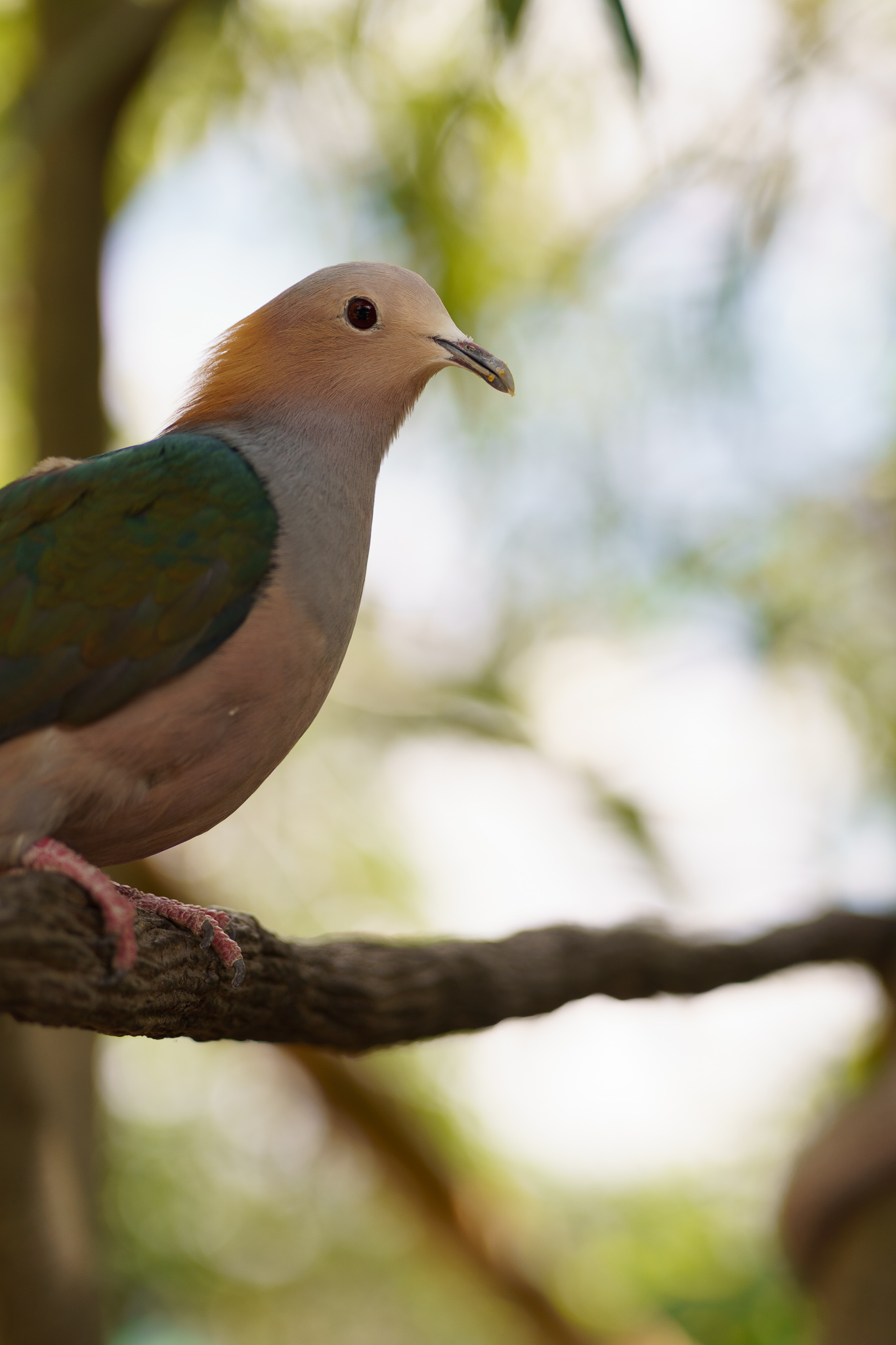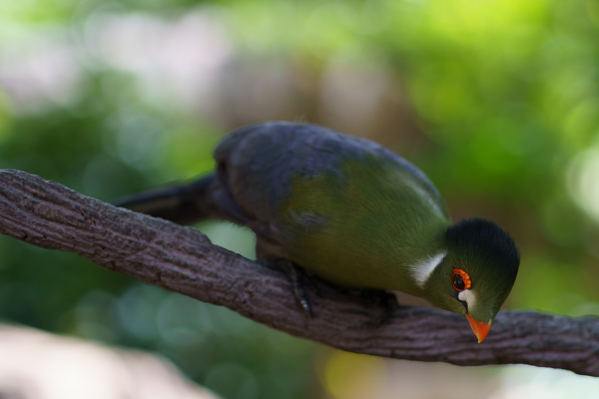 After my flamingo experience, I started moving towards the aviary. As I walked the main path I spotted the two colorful macaws we had seen on the way in. They were in an open enclosure with no annoying mesh or wire to shoot through. I was again able to frame them nicely with only my 75mm f/1.8. The images are sharp, detailed, and the backgrounds look nice.