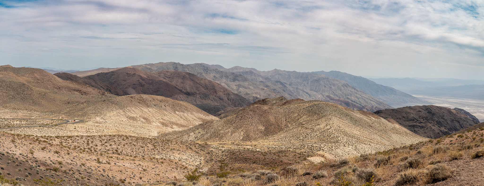 We continued on to Artist’s Palette. This area is made up of colored hills and craggy mountains, which our tour guide proudly proclaimed were used as sets in Star Wars. There were some neat angles, but there was a lot of haze in the distance which prevented me from getting all of the shots I had in my mind. I still focused on leading lines, layers, and triangles in my compositions as much as I could.