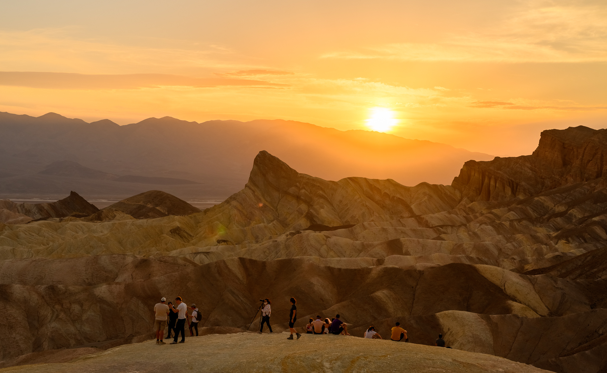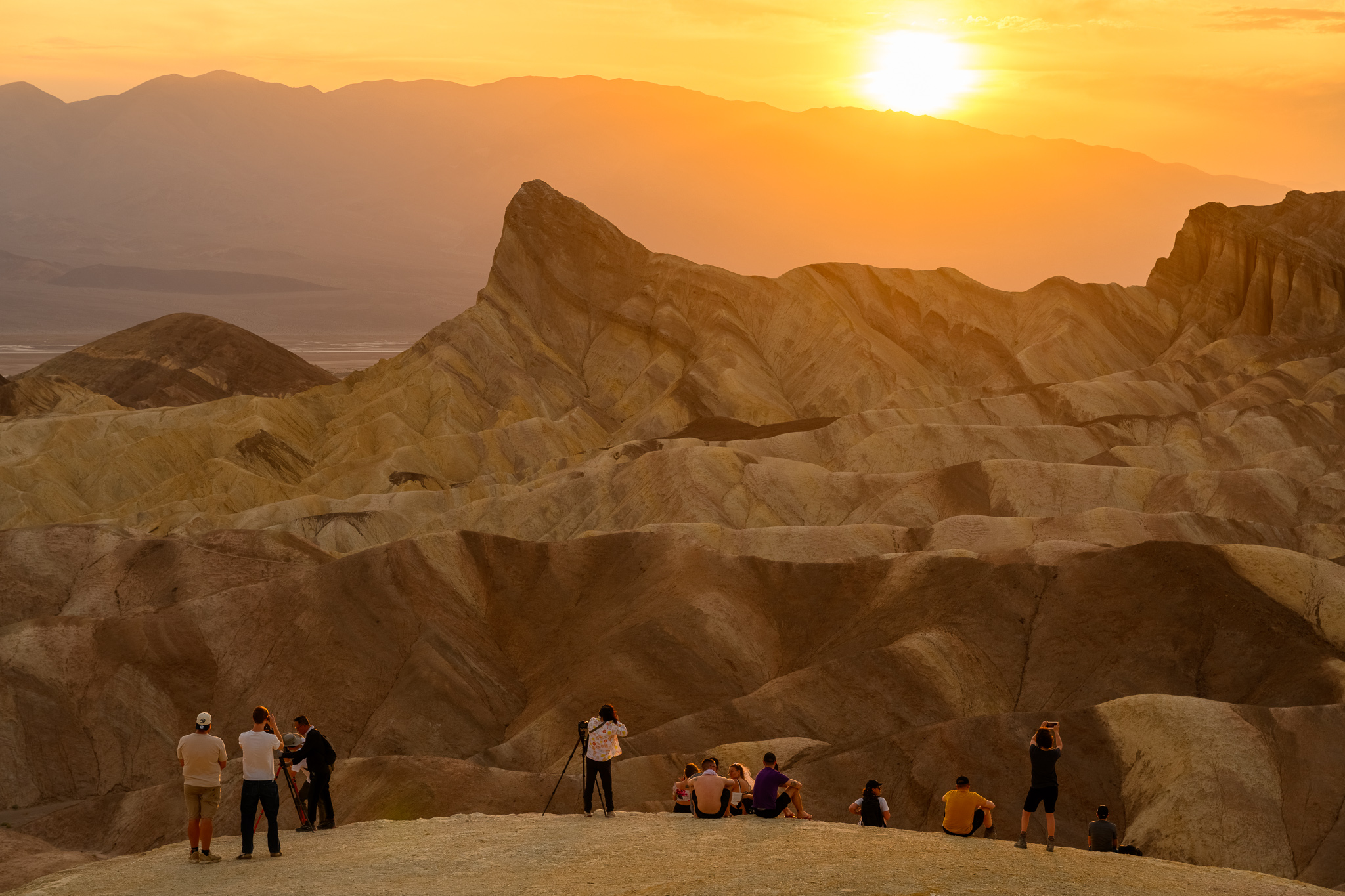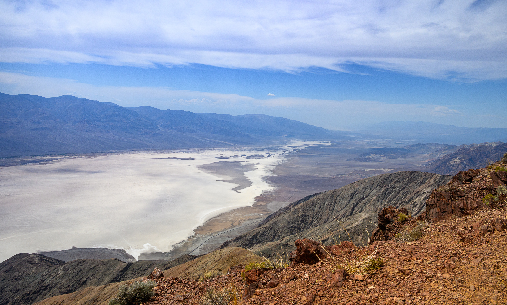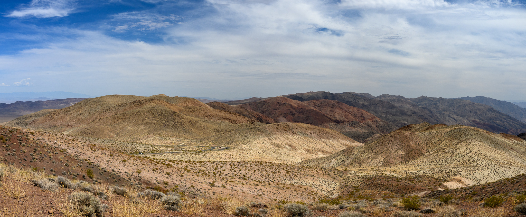 Our first stop was Dante’s View. This is a hilly area with a view of the vast mountains and salt flat basin below. There are cool colored hills in the distance and nicely defined paths up the hills in the area, which made for good leading lines, especially with people on them.