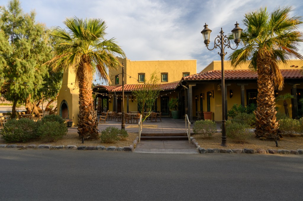 Our plan was to catch sunset at Zabriskie Point, but it was too early for that, so we headed over to our dinner stop. Out of the vast nothingness sprouted a resort of sorts called The Oasis at Death Valley. It was made up of multiple buildings surrounded by palm trees with mountains and desert all around it. It was actually pretty comprehensive with hotel rooms, a large air conditioned gift shop, a restaurant, a buffet, an ice cream shop, and a couple additional souvenir and clothing shops. It also had a small indoor museum and an outdoor museum with old farm equipment and a train engine. It was nice and refreshing, but had a weird, sort of abandoned feel to it. You got the idea that these were the only people out here… We stayed for about an hour and a half and I braved the buffet before moving on to our second to last stop.
