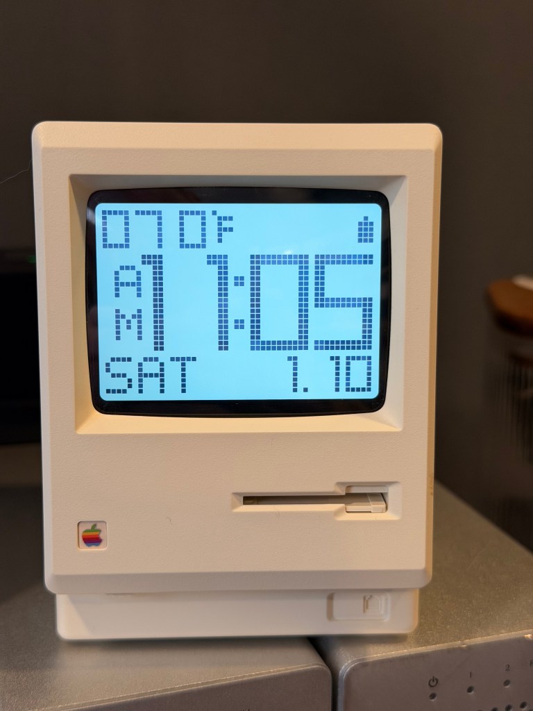 I came across the Kokogol Maclock in November and was immediately drawn to its design. Its case is a near perfect replica of a Mac 128k down to the vents, brightness knob, fake ports, and even the floppy disk you have to insert to turn it on. The clock is displayed in a pixel format and can show the time & temperature, date & temperature, or a smiley face. It includes an alarm as well. It’s powered by USB-C and has an internal battery that lasts a couple days with the backlight turned on.