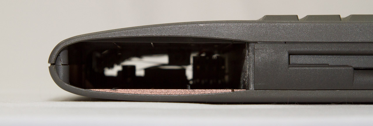 The 500 series is the first PowerBook to include a drive bay, even though it doesn’t work in quite the same way as the bay in later PowerBooks. The right battery compartment includes an internal PDS slot that allows small expansion modules to provide additional functionality. It is only as large as one of the batteries so it provides limited expansion capabilities. Apple sold a PCMCIA module for it, but it was unpopular because the 500 series already included the two features that were most commonly available as PCMCIA cards – ethernet and a modem. Sonnet also sold an expansion board that added an FPU to the 68LC040 CPU. It was nothing like the expansion bay introduced later with the PowerBook 5300.