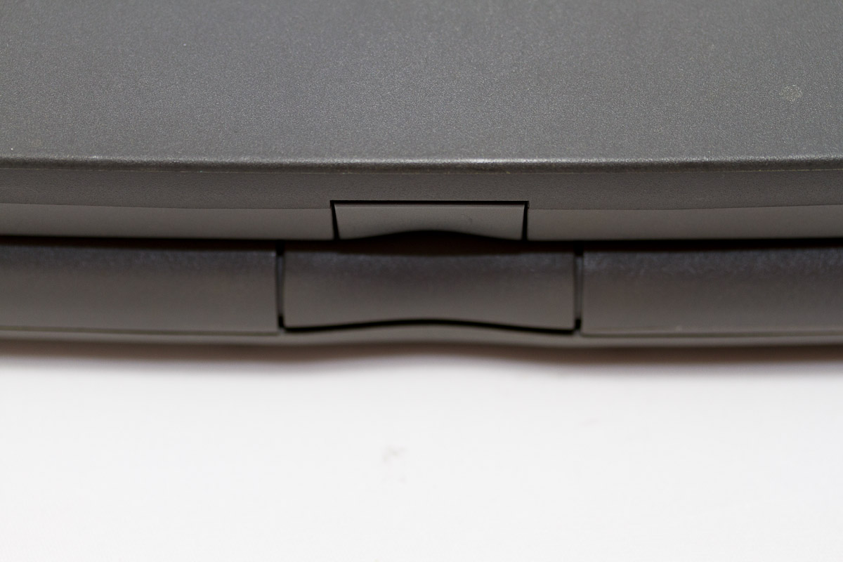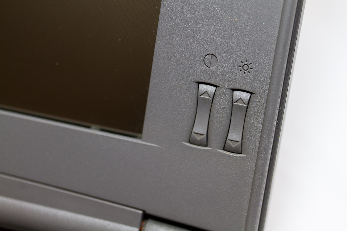 The 500 series case is defined by its smooth lines, curves at the top and front, tapered palm rests, and a gently indented trackpad button. The base is the traditional gray of the PowerBook 100 case with a black screen top and side trim. Shape-wise, the case contains a multitude of sloping angles and bulging curves. The palm rests gently slope downward making it easier to type, however the keyboard is still as mushy as its predecessors. Its profile is curvy, but almost looks like the curvaceous pieces don’t all fit together perfectly. It is still an attractive machine, but I wonder if Apple’s designers were not happy with it since they went in a less-curvy direction with its successors.