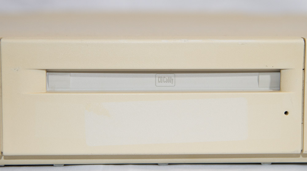 The 660 AV was one of the first Macs to offer a CD-ROM, and as such included a 2x caddy-loaded CD-ROM drive. Early CD-ROM drives required that CDs be placed into a caddy in order to be read. The caddy looked much like a CD jewel case and its purpose was to protect the disc from scratches. The problem was that if you lost the caddy, you couldn’t use your CD-ROM drive. Once a caddy is partially inserted the drive acts much like a tape drive and sucks the rest of it in. Otherwise it functions like a regular tray loading drive.
