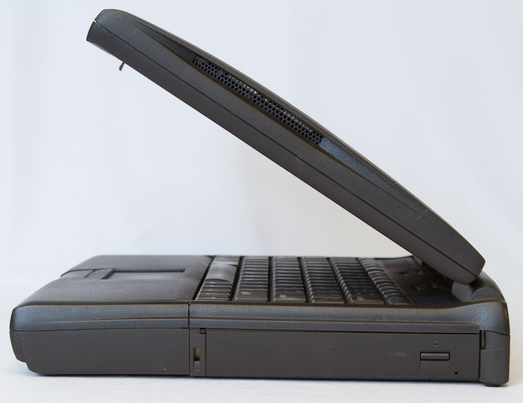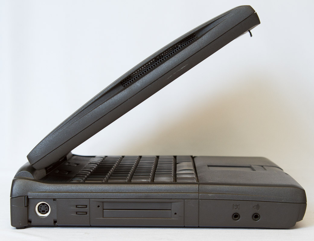 Based on the same PCI architecture as the newest desktop Macs of the time, the 3400c’s primary focus was performance. It uses one of three PowerPC 603e CPUs clocked at either 180, 200, or a blazing (for the time) 240 MHz. Each is fitted with a 256K L2 cache, double the size of the cache on the 133 MHz PowerBook 1400c. The new design includes Direct Memory Access (DMA) which provides external peripherals access to memory without first going through the CPU, resulting in better performance. In addition the 3400 more than doubles the 64 MB memory ceiling of the 1400 and allows up to 144 MB of memory. These features not only make the 3400c almost 60% faster than the 1400 but also faster than the highest-end Pentium notebooks available at the time. For the first time in its six-year history, the PowerBook was the performance leader.